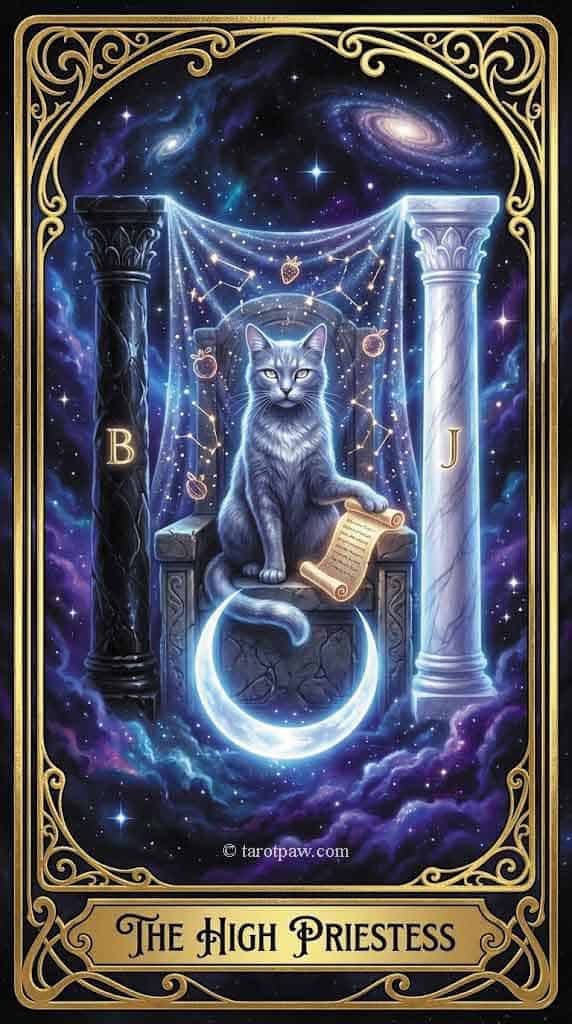 The High Priestess represents a time of profound intuition, mystery, and the need for stillness.